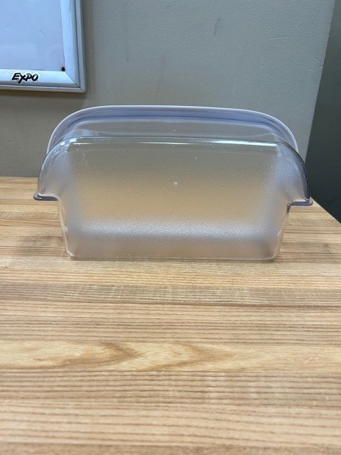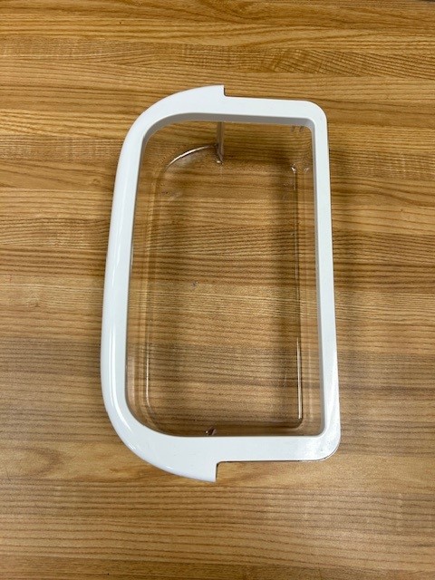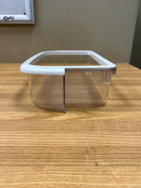 This part is clear with a white trim around the top edge. The door bin attaches to the inside of the refrigerator door and typically holds jars and bottles. This bin is normally found in a 30″ wide fridge.