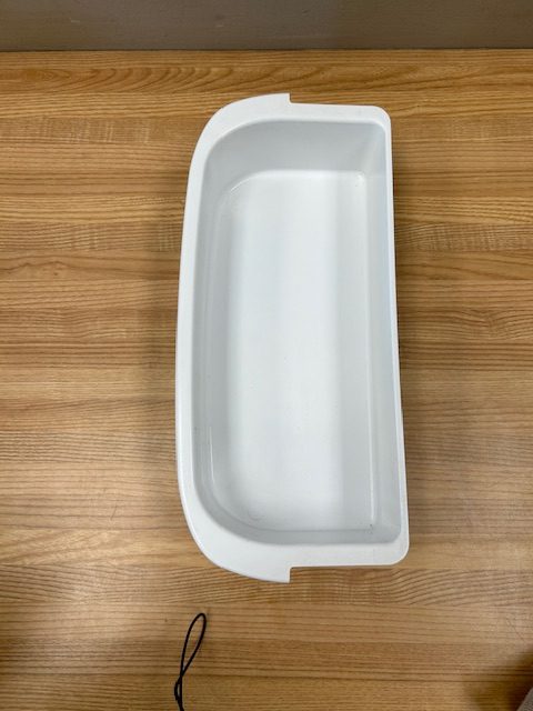 The door bin attaches to the inside of the refrigerator door and typically holds jars and bottles. This Bin is found on the Left door of a French Door Fridge.