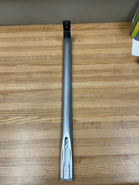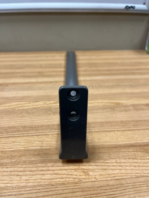 This is a Metal Handle with a Plastic end piece, Stainless/Grey in colour. Doesn’t come with the handle screws. The handle will work for both the Fridge and Freezer Doors.