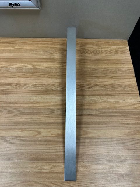 This is a Metal Handle with a Plastic end piece, Stainless/Grey in colour. Doesn’t come with the handle screws. The handle will work for both the Fridge and Freezer Doors.