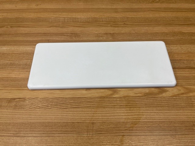 Fridge door Shelf Cover, White in color, Swivels open and closed.