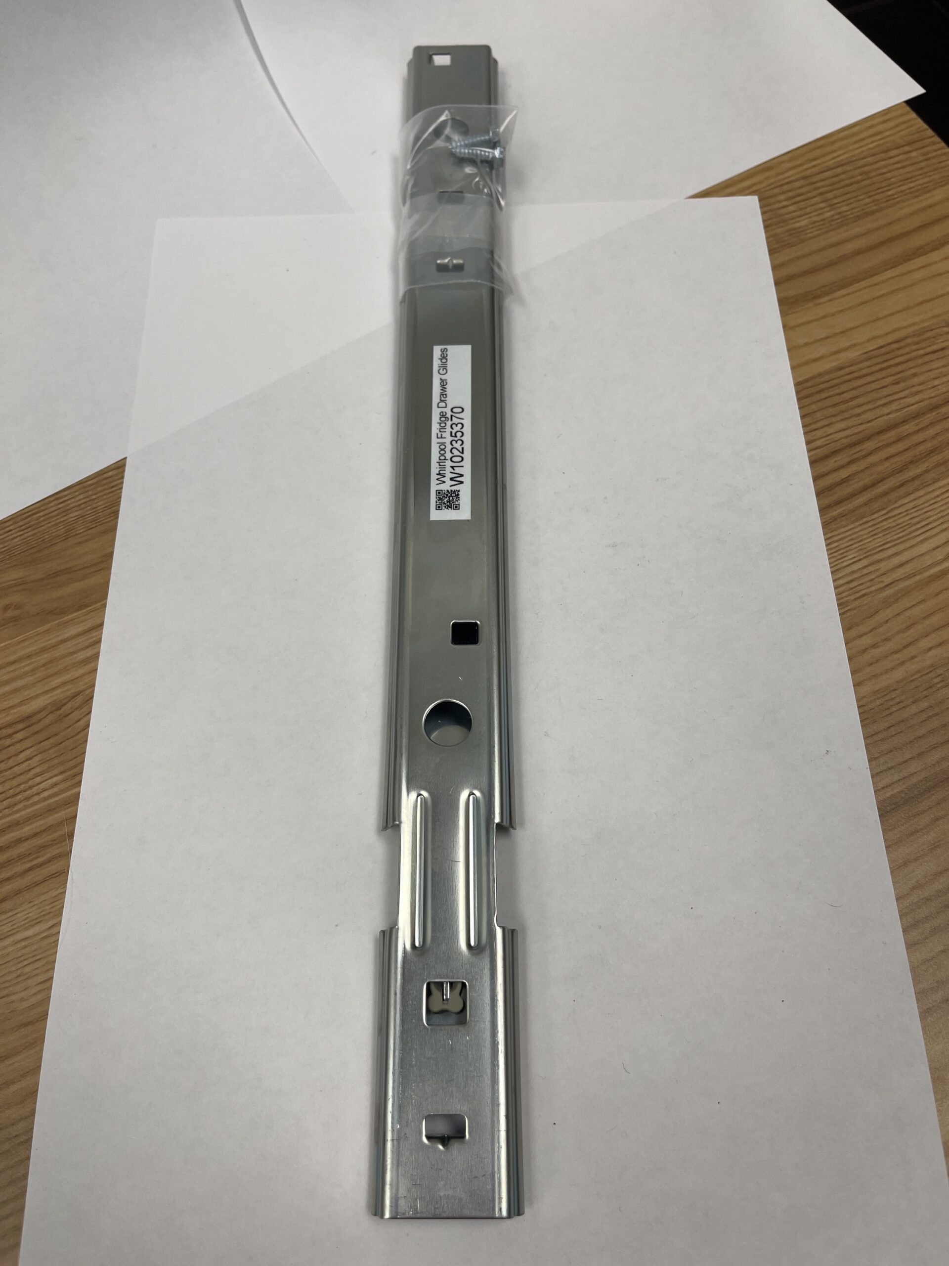 Refrigerator Pantry drawer glides. The pantry drawer glides attach to the end caps and allow the pantry drawer to slide in and out. Same part for the Left and Right side drawer. Comes with 2 screws.