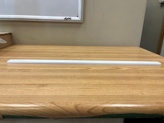 This door shelf bar is white in colour. The door shelf trim snaps into place on the door to hold items on the door shelf. This door bar is normally found in the FF section of a fridge. Width: 23 3/8″