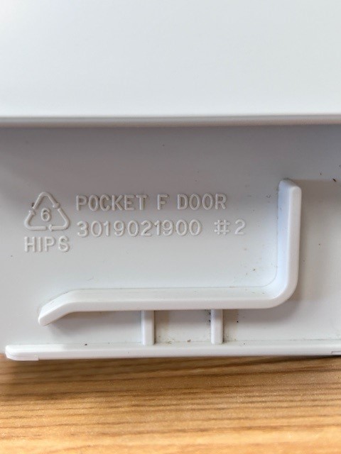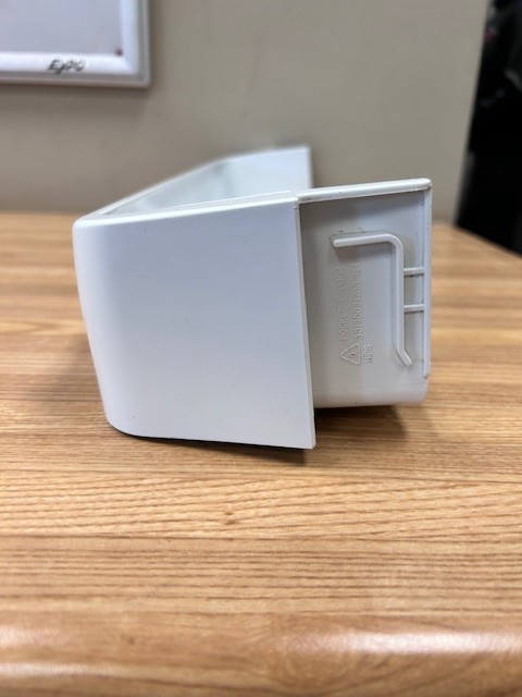 This door shelf bar is white in colour. The door shelf trim snaps into place on the door to hold items on the door . This door bar is normally found in the Freezer section of a single door 28″ fridge with top mount freezer. Width 22 1/2″