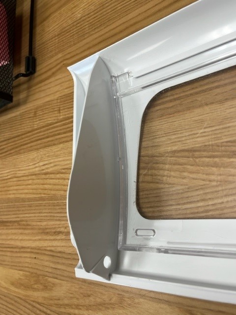 This pantry drawer front Lid is white with a clear plastic window. The pantry drawer front covers the pantry drawer and helps keep items placed inside the drawer at the proper temperature by providing the proper seal. This part is 30 1/2″ wide and 6 3/4″ deep. This Pantry Drawer lid is usually found in a 36″ wide French door Fridge.