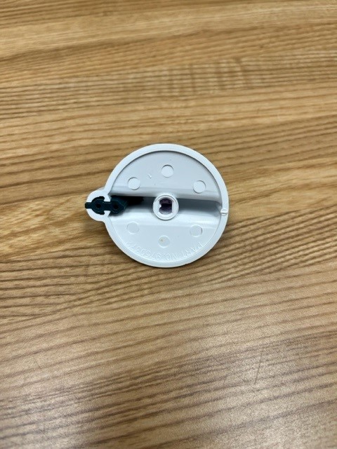 Description: This control knob is white in colour with grey details. The knob turns the burner control that powers the heat of the surface burner on your range.