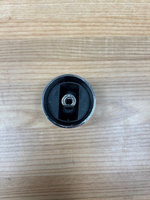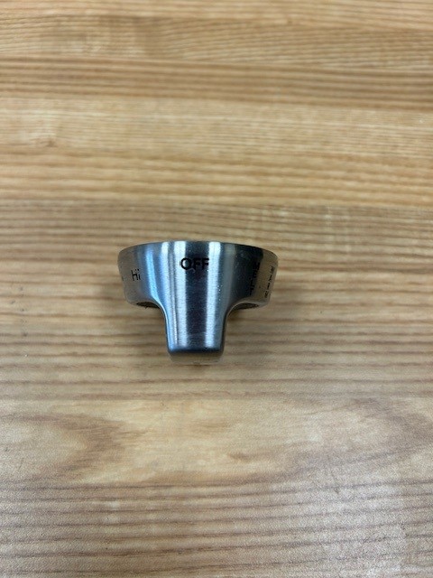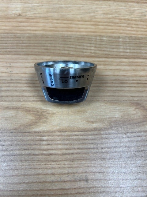This control knob is made of metal and is silver and black in color. The knob turns the burner control that powers the heat of the surface burner on your range.