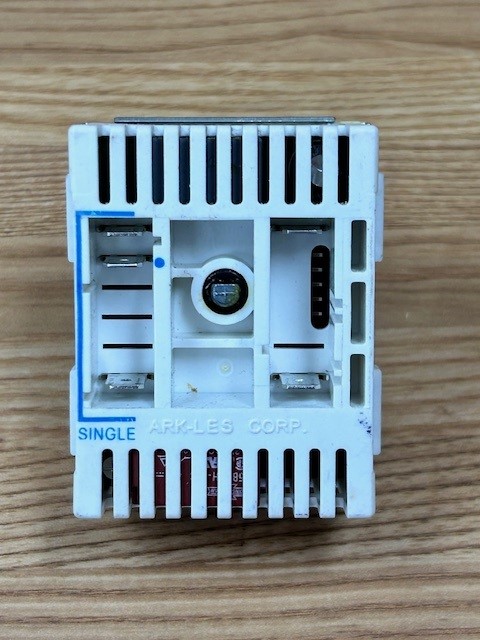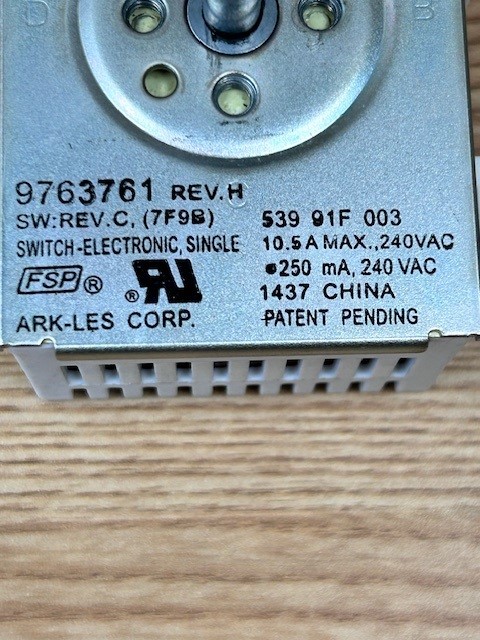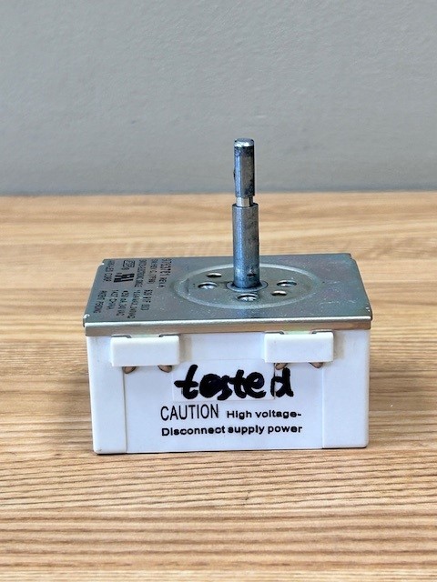 Description: This switch is the control for a Single surface element on the stove. This switch is 10.5 amps and 240 volts. This part is also known as an infinite switch, burner control switch.