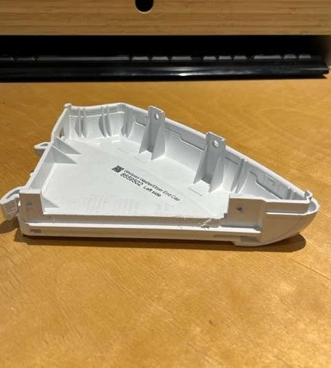 White Plastic End cap from on the Left Hand side of the Washer or Dryer Console. Note: Not sold with the Metal Console Clip (See part# WP8312709)